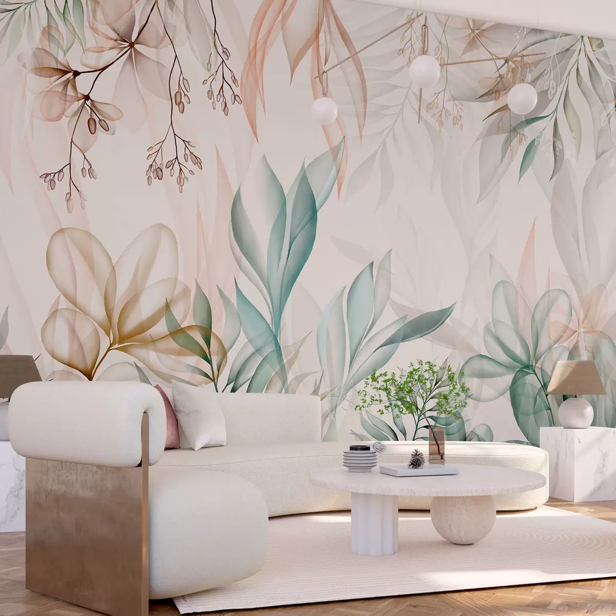 fototapet Frunziș tropical delicat în culori pastelate w02316