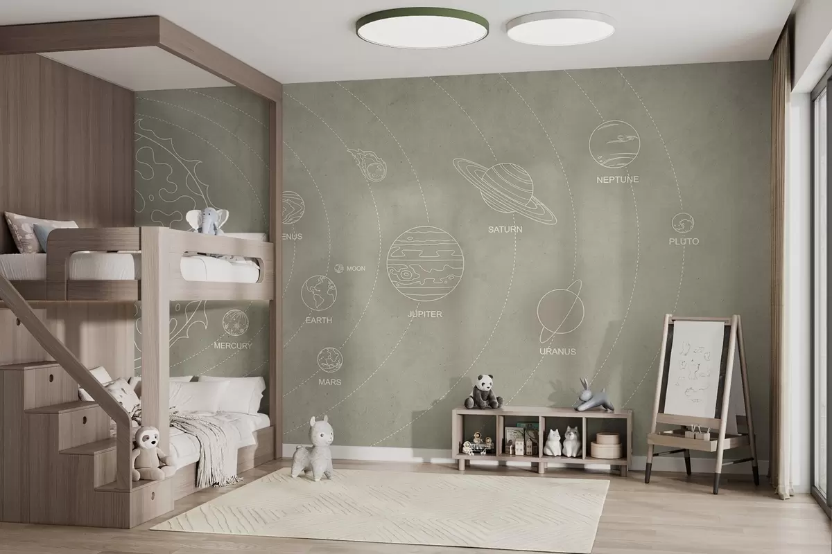 Fototapet Sistem solar într-un stil minimalist pe un fundal texturat bej rece Nr. w02344