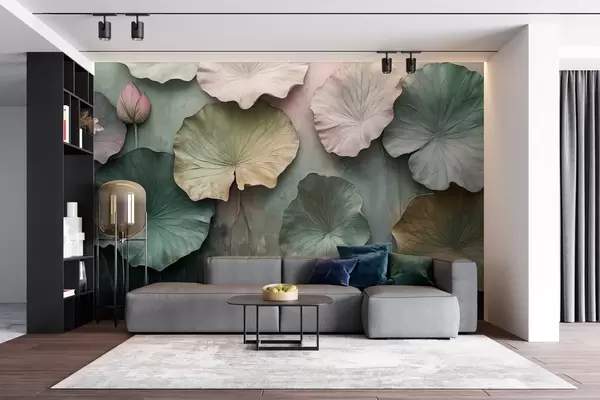 Fototapet frunze de lotus în stil pastel cu un efect de volum Nr. w02441