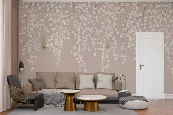 Fototapet Ramuri delicate curgătoare cu flori pe un fundal pastel Nr. w02479v2