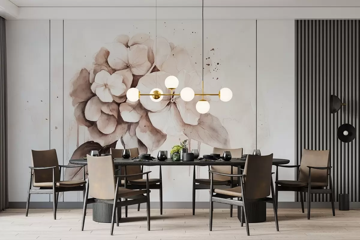 Fototapet Hydrangea desen, stil acuarelă, culori bej Nr. w02483