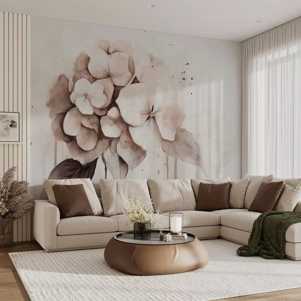 Fototapet Hydrangea desen, stil acuarelă, culori bej Nr. w02483
