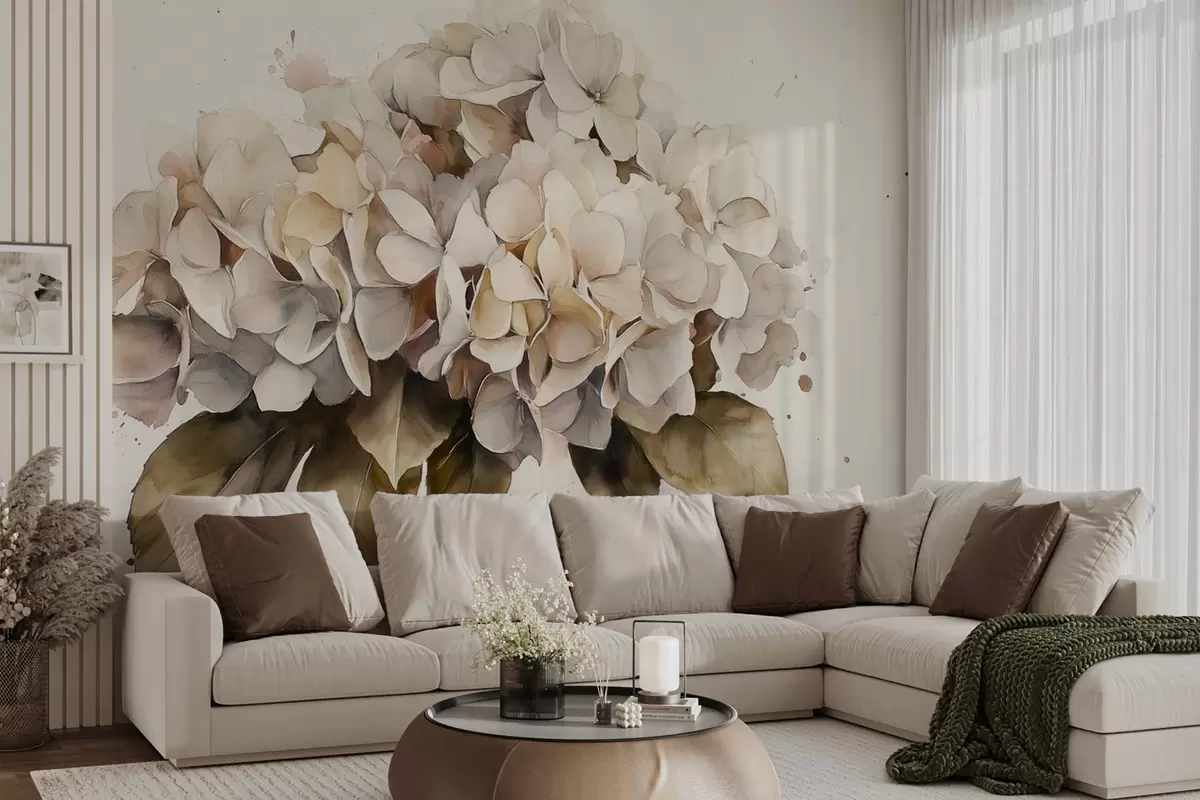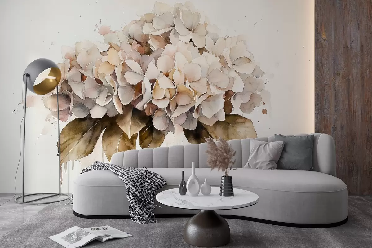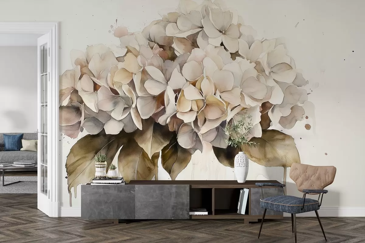 Fototapet Stil acuarelă desen de flori hortensie, culori bej Nr. w02485