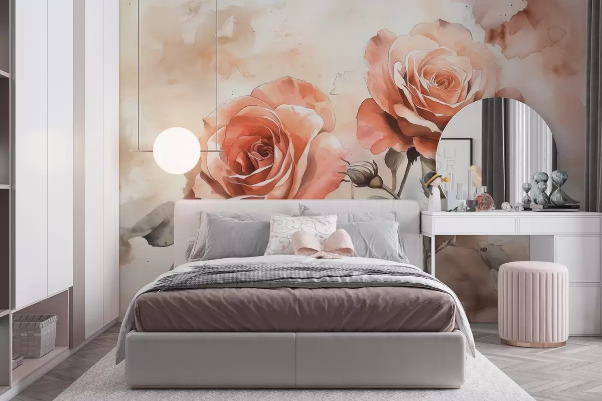 Fototapet Frumoși trandafiri roșii în stil acuarelă, florale, culori bej Nr. w02486
