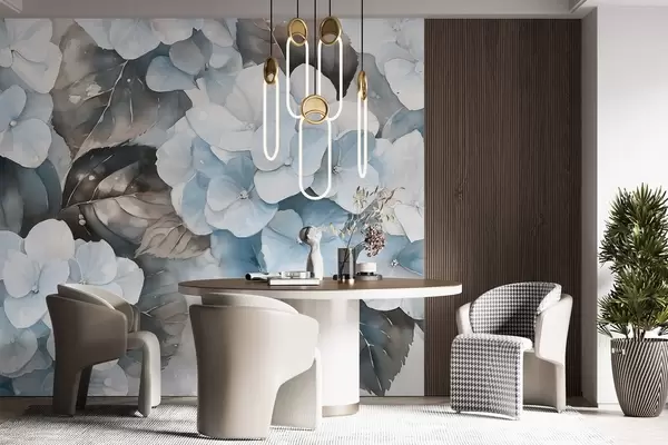Fototapet Hydrangea flori, desen în stil acuarelă, culori albastre, florale Nr. w02488v1
