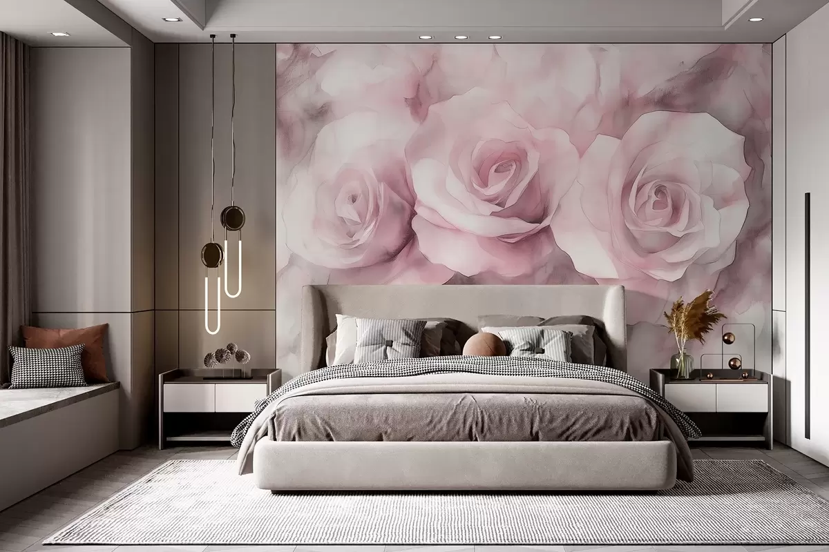 Fototapet Trandafiri frumoși, stil acuarelă, culori roz, boem Nr. w02492v1