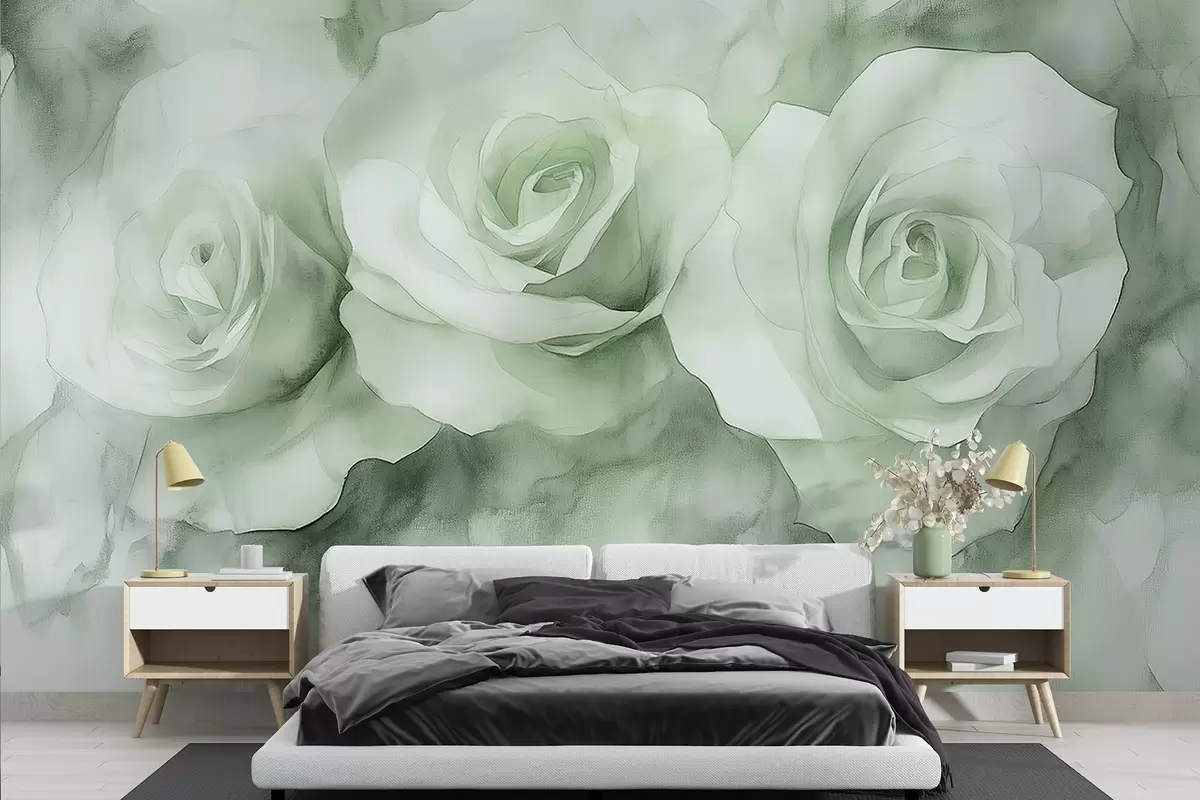 Fototapet Trandafiri frumoși, stil acuarelă, culori verzi, boem Nr. w02492v2