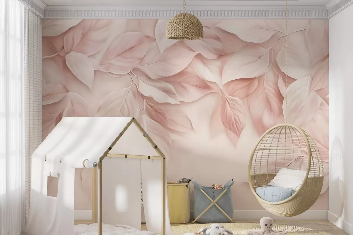 Fototapet frunze roz delicate pentru dormitorul fetei Nr. w02549