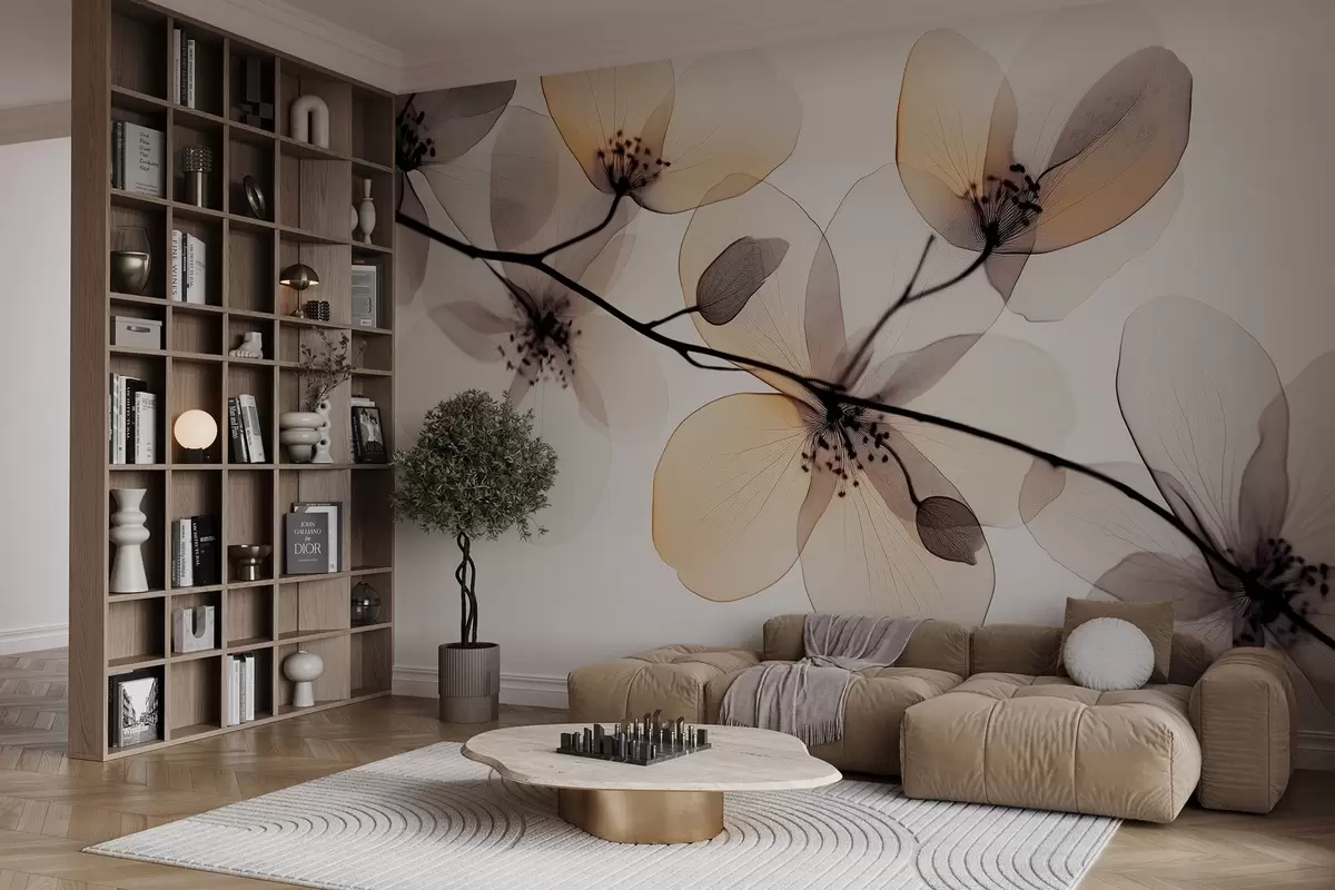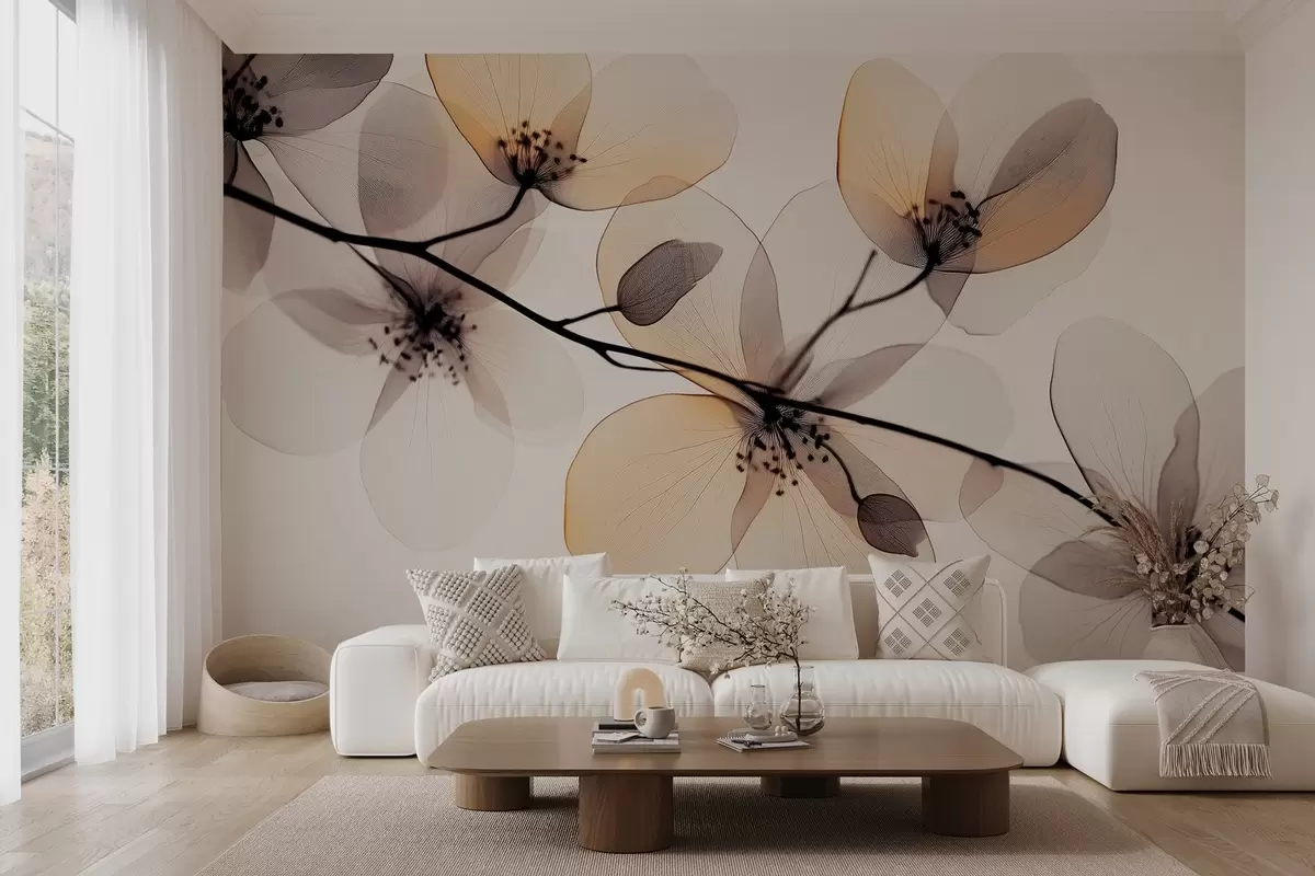 Fototapet ramură delicată și rafinată cu flori transparente Nr. w02630