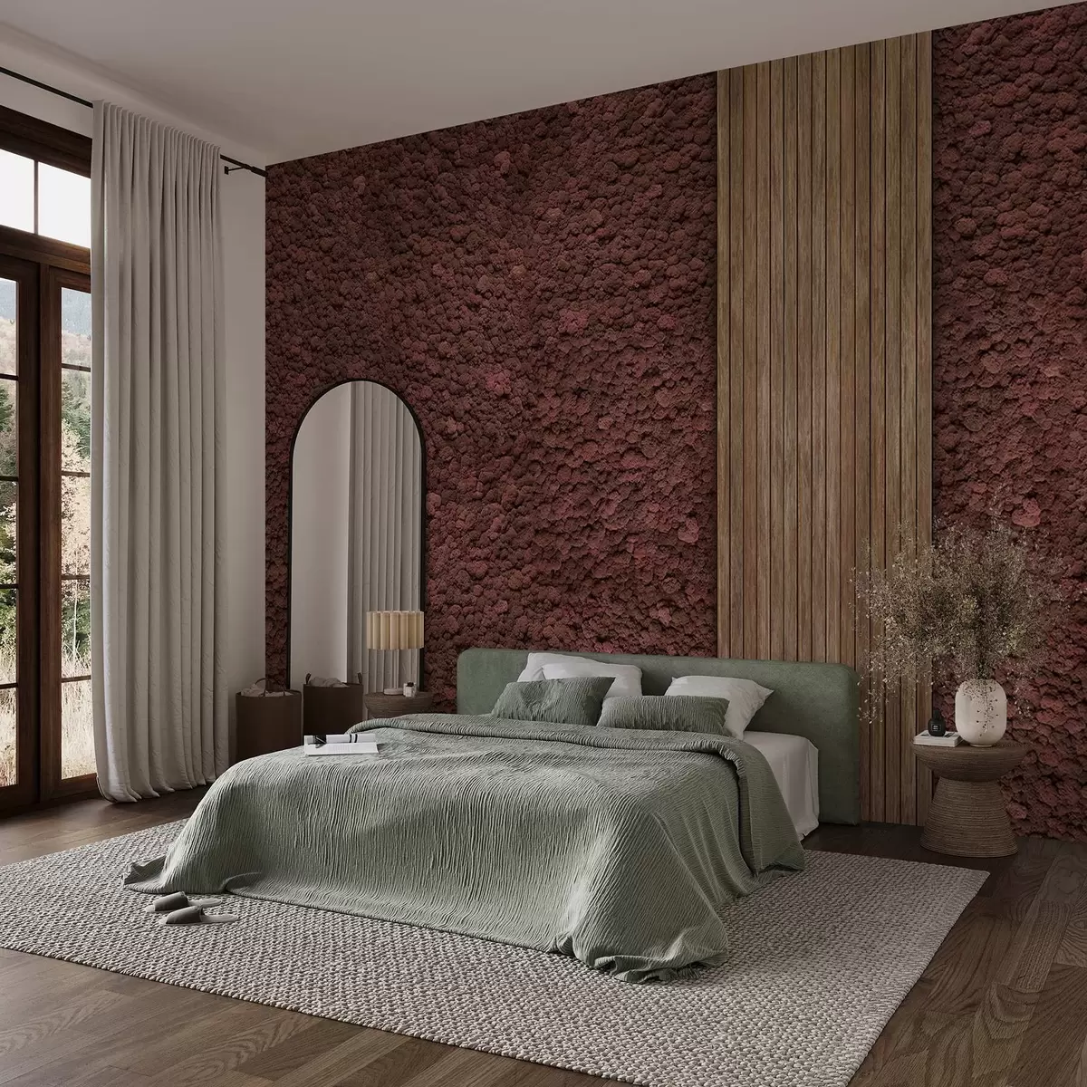 Fototapet Moss stil de perete cu panou de lemn, culori burgundy luxuriante Nr. w02656v1