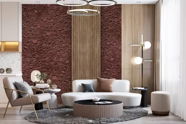 Fototapet Moss stil de perete cu panou de lemn, culori burgundy luxuriante Nr. w02656v1