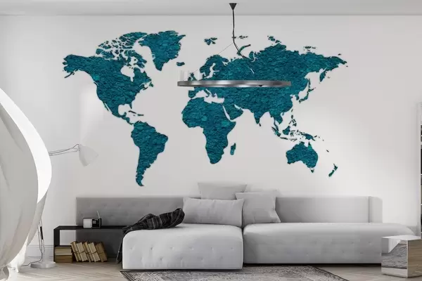 Fototapet Harta lumii cu mușchi, natura, paleta de culori albastru Nr. w02657v1