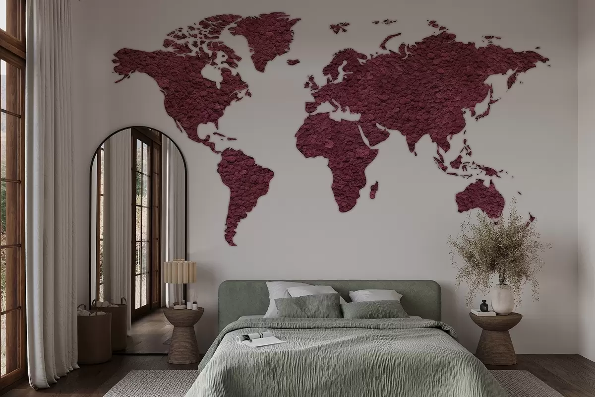 Fototapet Harta lumii cu mușchi, natură, paleta de culori burgundy Nr. w02657v5
