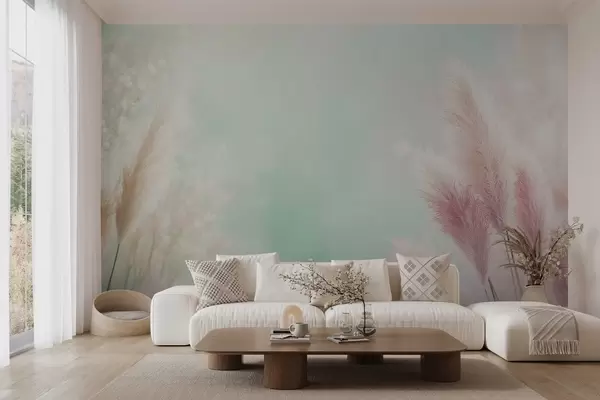 Fototapet iarbă de pampas pe un fundal delicat turcoaz Nr. w02766