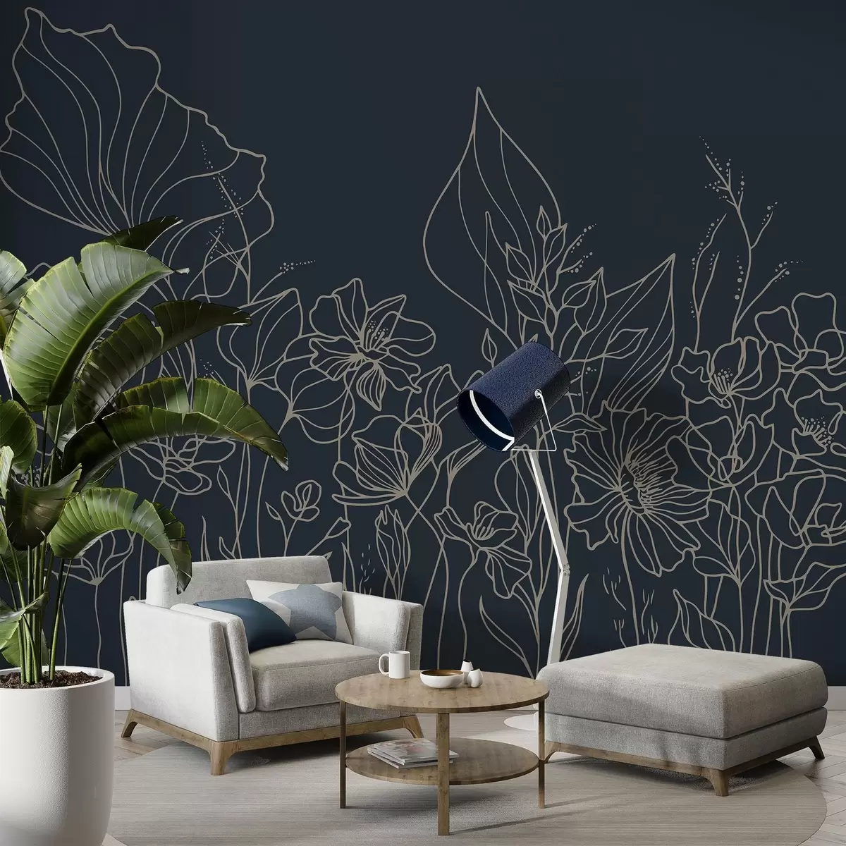 Fototapet Elegant florale linie de artă pe albastru marin Nr. w02773v2
