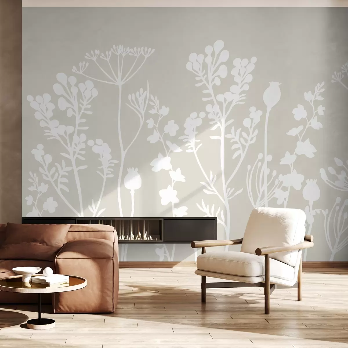 Fototapet siluete albe de flori pe un fundal bej Nr. w02809v2