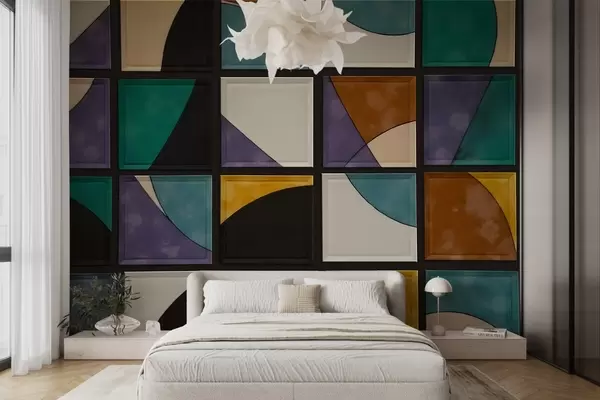 Fototapet Pătrate de mozaic colorate pe un fundal închis Nr. w02849