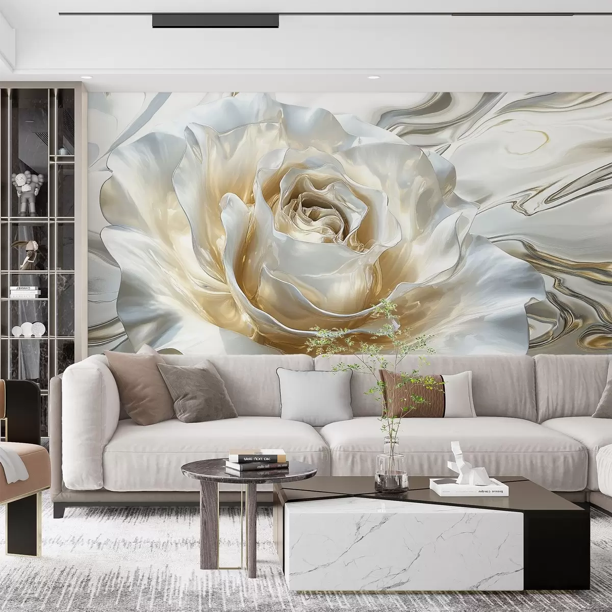 Fototapet Trandafir mare alb perlat în stil metalic Nr. w02870
