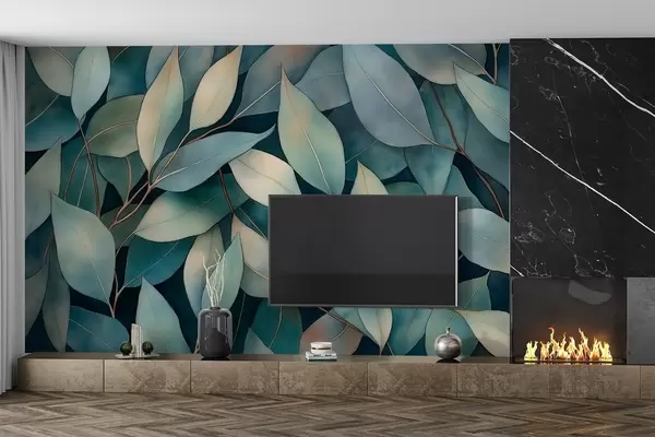 fototapet Frunze de eucalipt, desen în stil acuarelă, model floral, culori verzi w02931