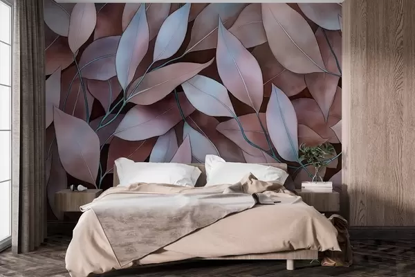 Fototapet Frunze de eucalipt, desen în stil acuarelă, model floral, culori maro Nr. w02931v1