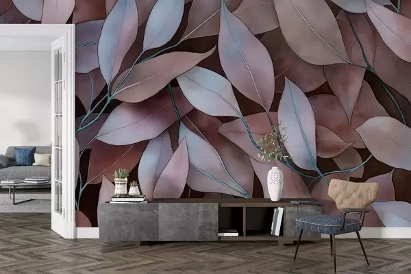 Fototapet Frunze de eucalipt, desen în stil acuarelă, model floral, culori maro Nr. w02931v1