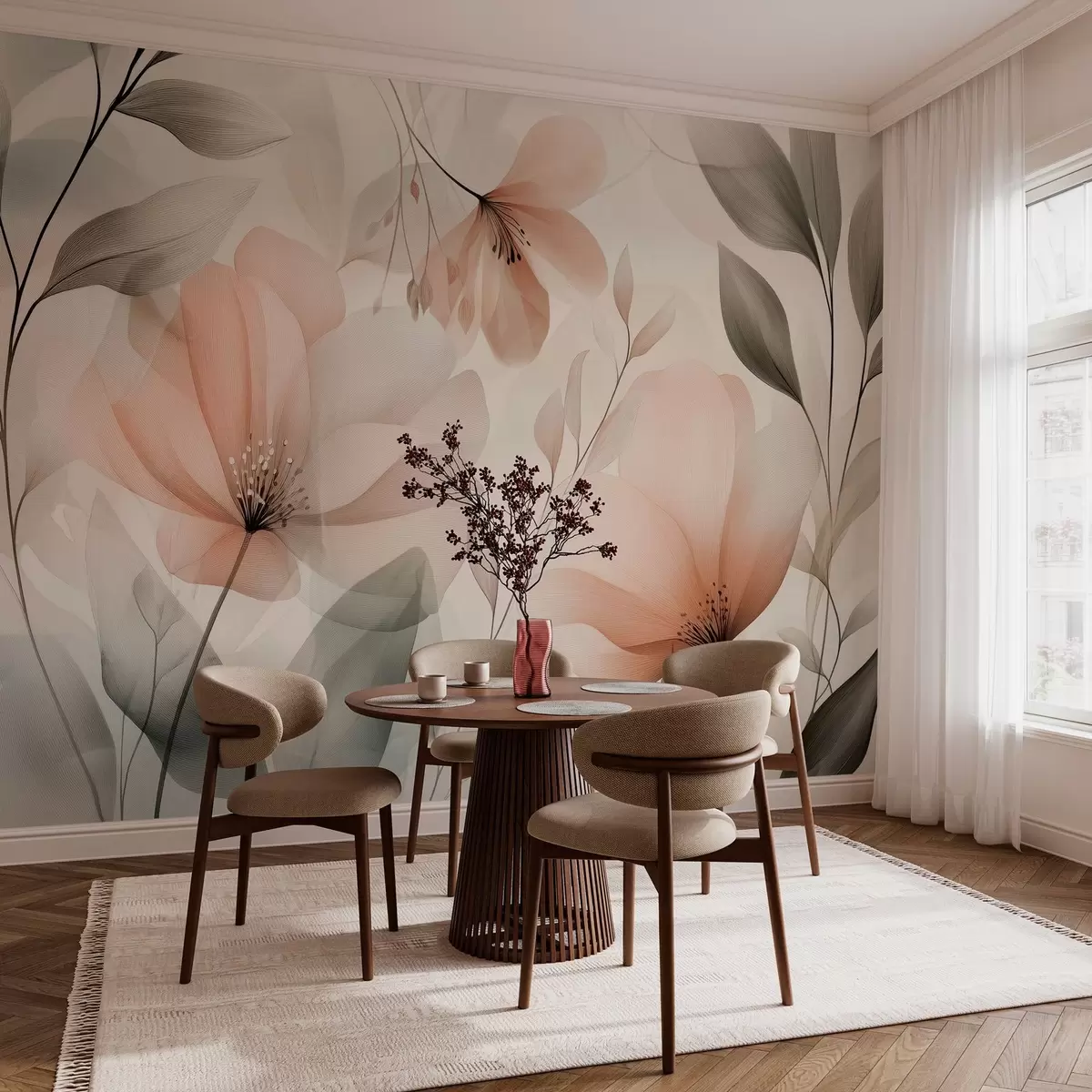 Fototapet flori delicate și aerisite în nuanțe calde de pământ Nr. w03010