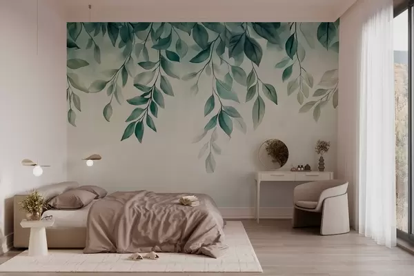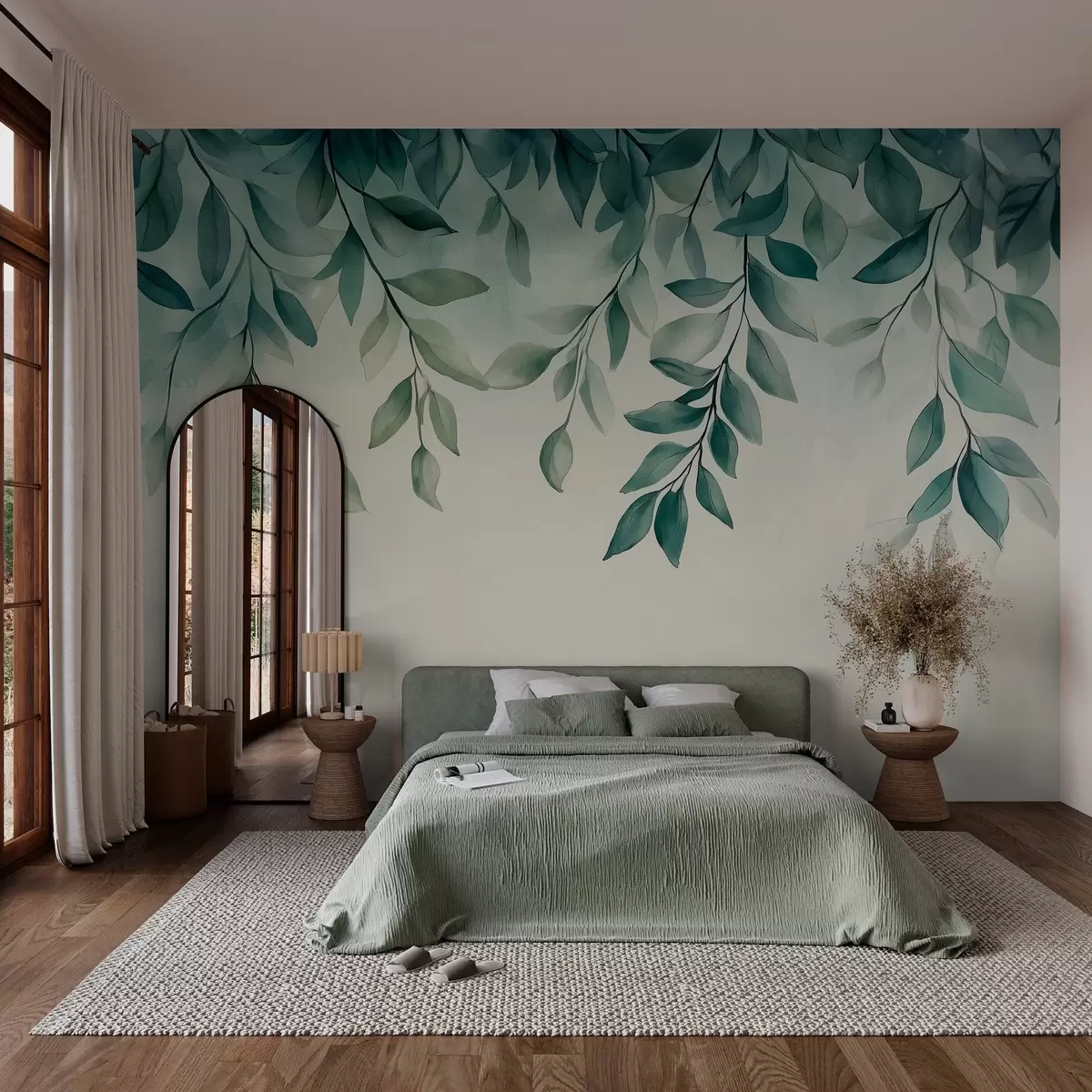 Fototapet frunze verzi în stil acuarelă care atârnă de vârf Nr. w03024