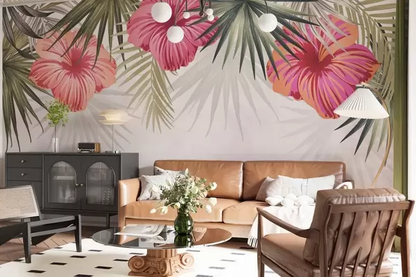 Fototapet Frunze și flori tropicale de sus Nr. w03106