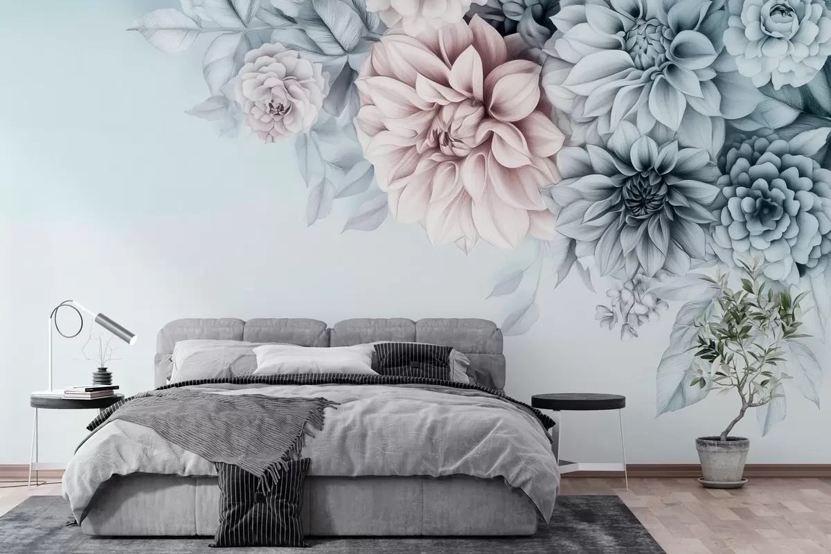 Fototapet un buchet de crizanteme pe un fundal gri-albastru Nr. w03118