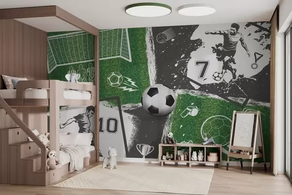 Fototapet Jucători de fotbal, minge și teren Nr. w03121