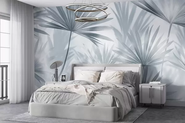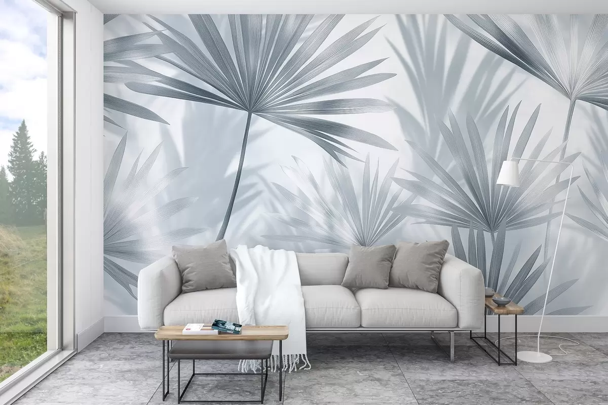 Fototapet Frunze de palmier, model floral, minimalism, tropical, culori gri Nr. w03152v1