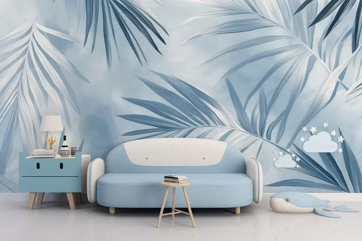 Fototapet Frunze tropicale abstracție, palmier, paleta de culori albastru Nr. w03153