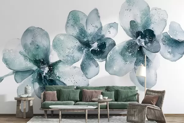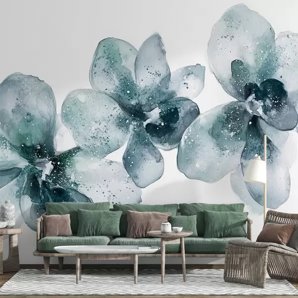 Fototapet Stil acuarelă flori de orhidee, culori acvamarin Nr. w03163v1