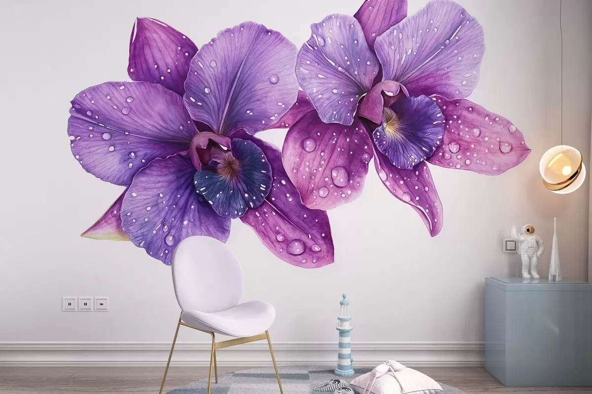 Fototapet Flori frumoase de orhidee, desen în stil acuarelă, culori violet Nr. w03164