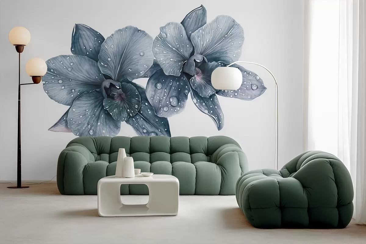 Fototapet Flori frumoase de orhidee, desen în stil acuarelă, culori albastre Nr. w03164v2