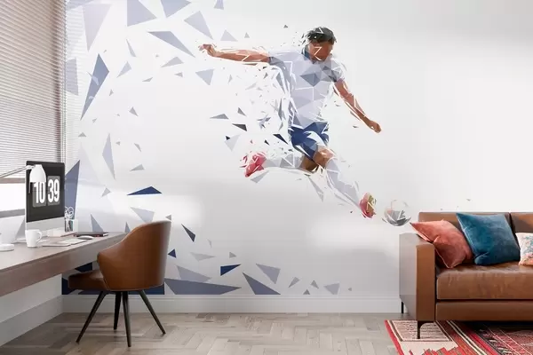 Fototapet Fotbalist dinamic într-un stil low-poly, lovind mingea Nr. w03289