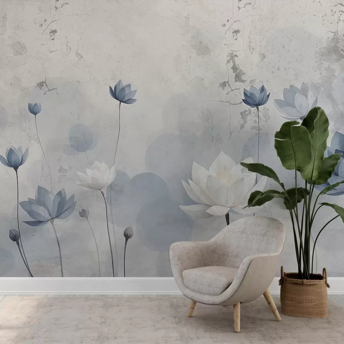 Fototapet Perete crăpat cu lotusuri pictate Nr. w03336
