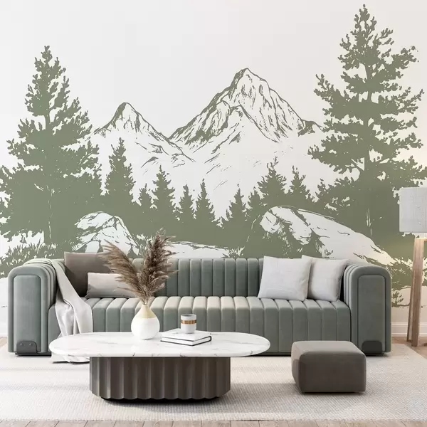 Fototapet Alpi, munți cu pădure, desen liniar, culoare verde Nr. w03342v1