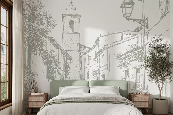 Fototapet Strada orașului, arhitectură frumoasă, clădiri, mediteranean, linie de desen, culoare de măsline Nr. w03345