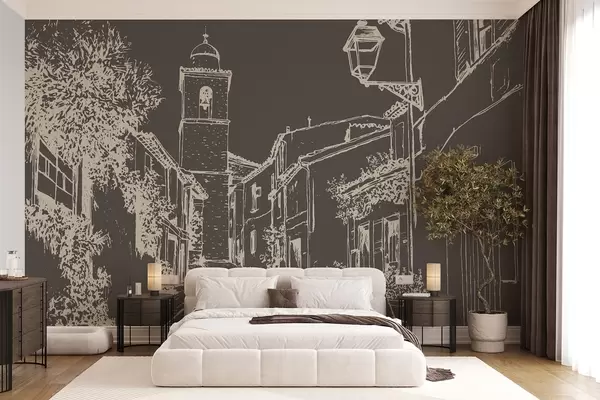Fototapet Strada orașului, arhitectură frumoasă, clădiri, Marea Mediterană, desen liniar, culoare închisă Nr. w03345v2