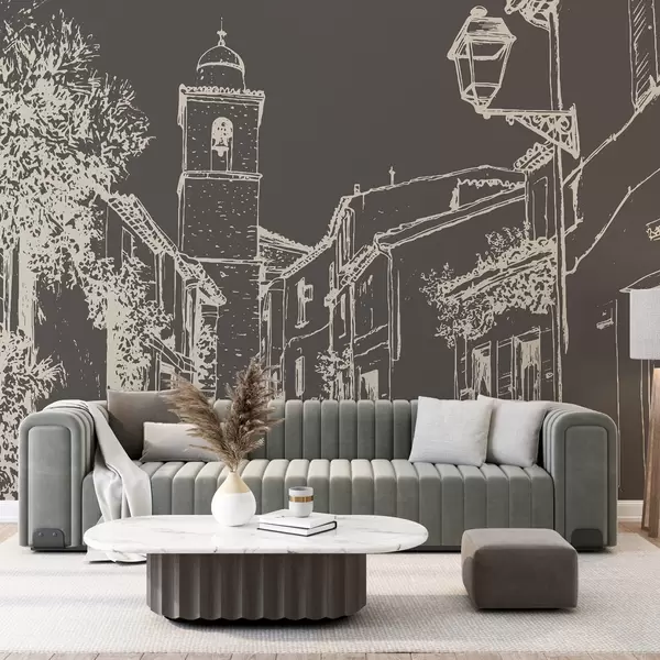 Fototapet Strada orașului, arhitectură frumoasă, clădiri, Marea Mediterană, desen liniar, culoare închisă Nr. w03345v2