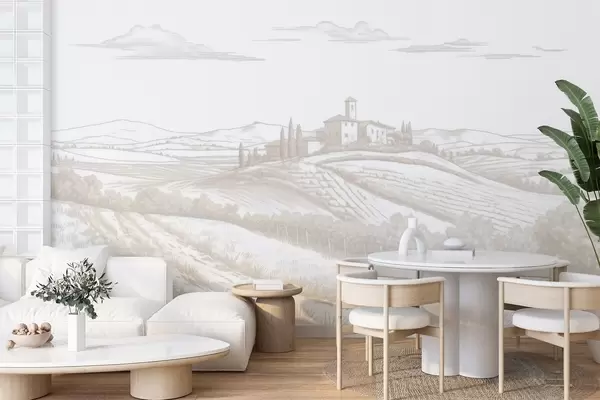 Fototapet Toscana peisaje, Italia, podgorii, natura, castel vechi, culori bej Nr. w03349