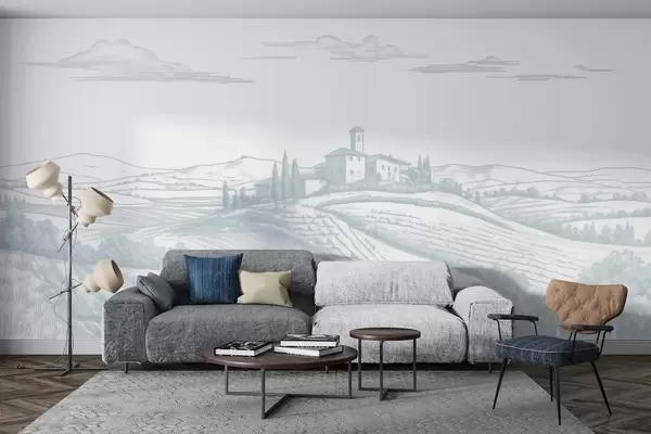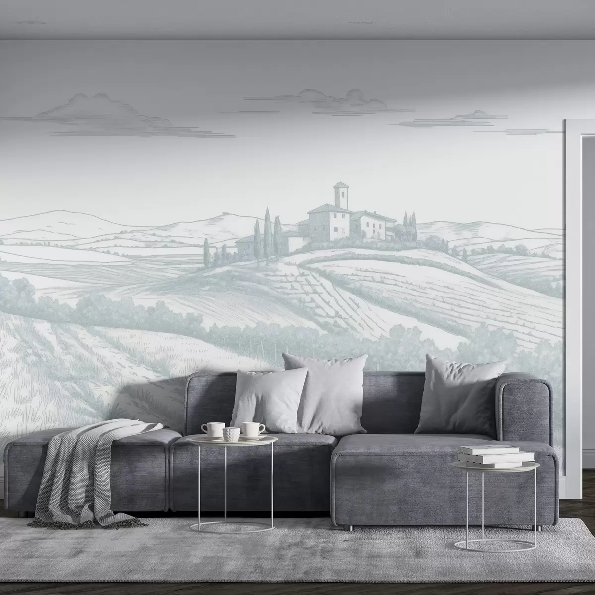 Fototapet Toscana peisaje, Italia, podgorii, natura, castel vechi, culori albastre Nr. w03349v1