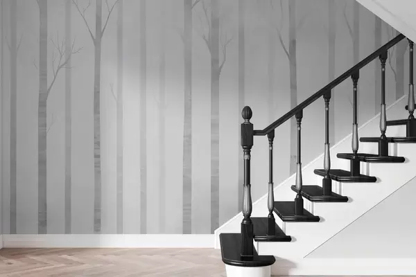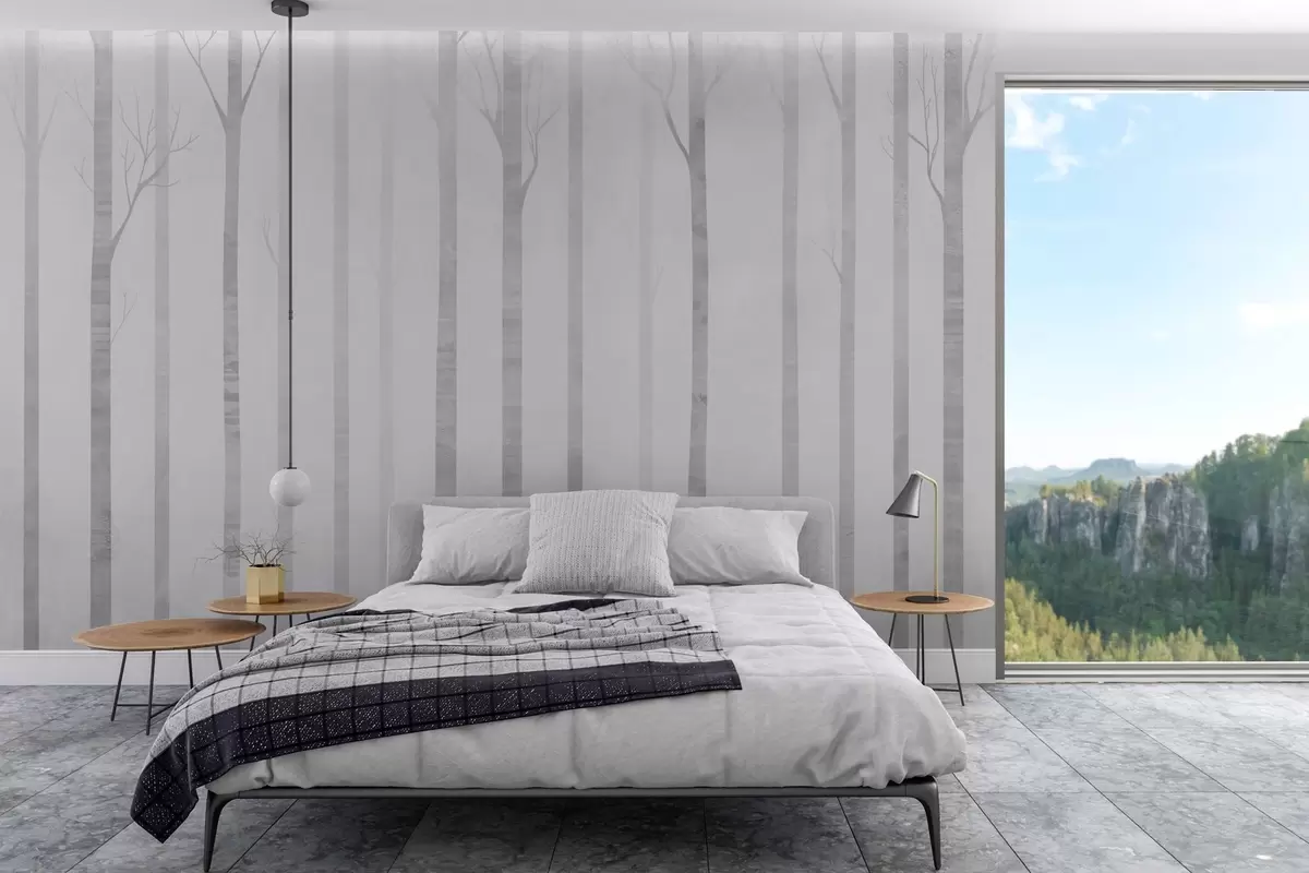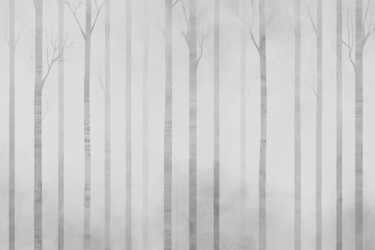 Fototapet Trunchiuri de copaci în ceață în scară de gri Nr. w03386
