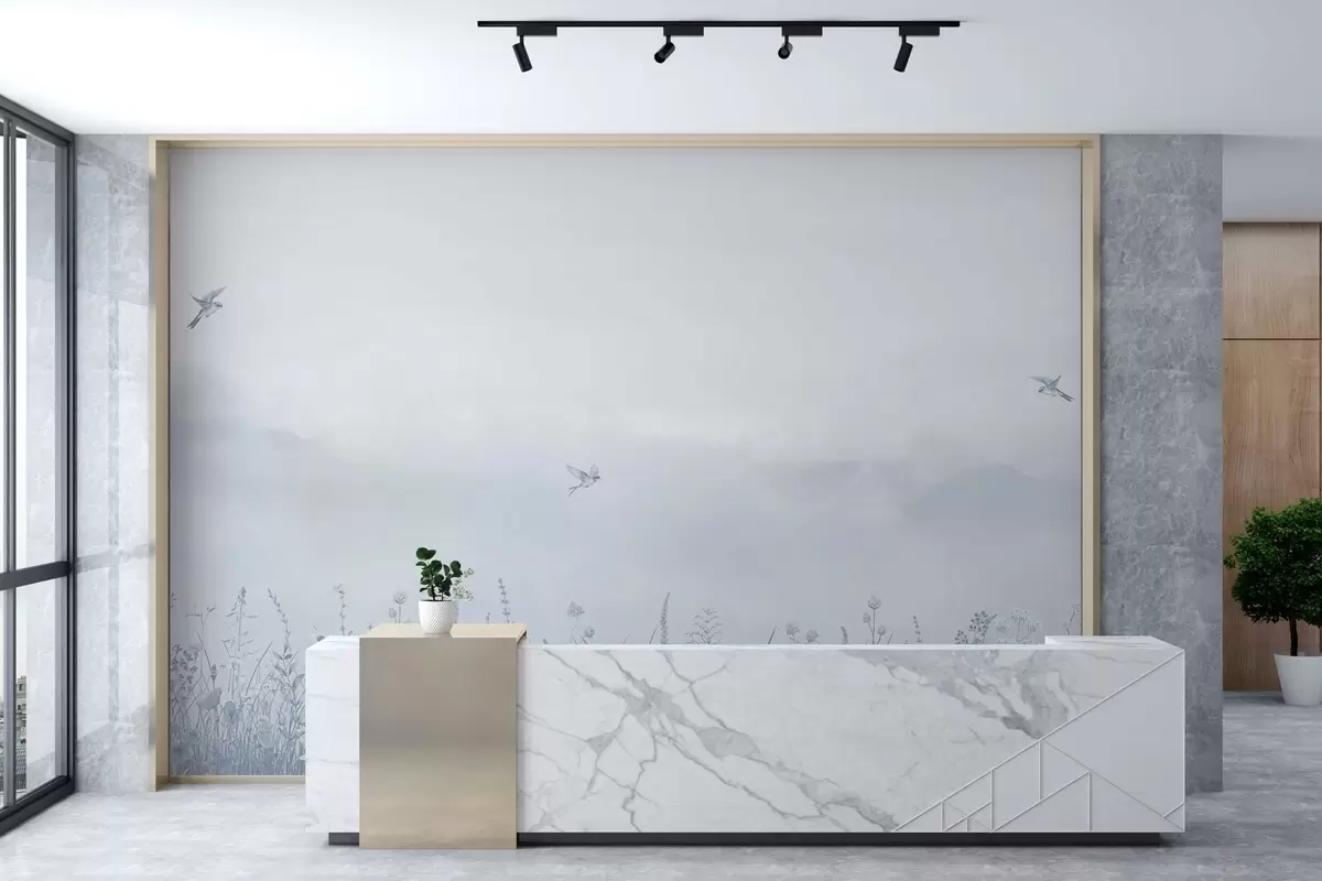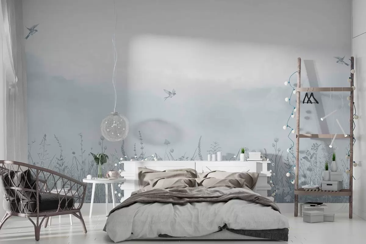 Fototapet Flori sălbatice și cer cețos în tonuri albastre Nr. w03391v1