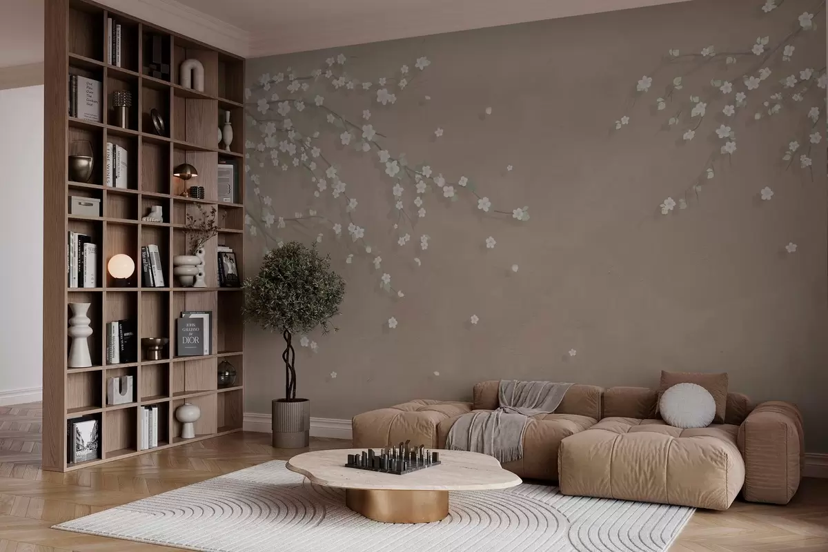 Fototapet Ramură înfloritoare pe fundalul de perete grunge Nr. w03393