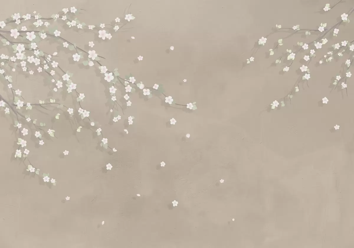 Fototapet Ramură înflorită pe fundalul unui perete grunge în culoarea bej Nr. w03393v2