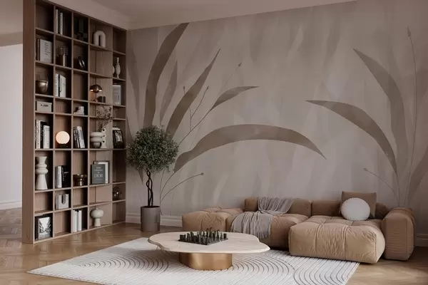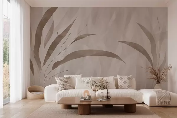 Fototapet Stil eco, plante pe un fundal eterogen texturat în tonuri de bej Nr. w03394