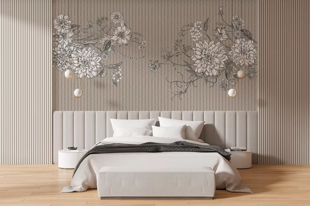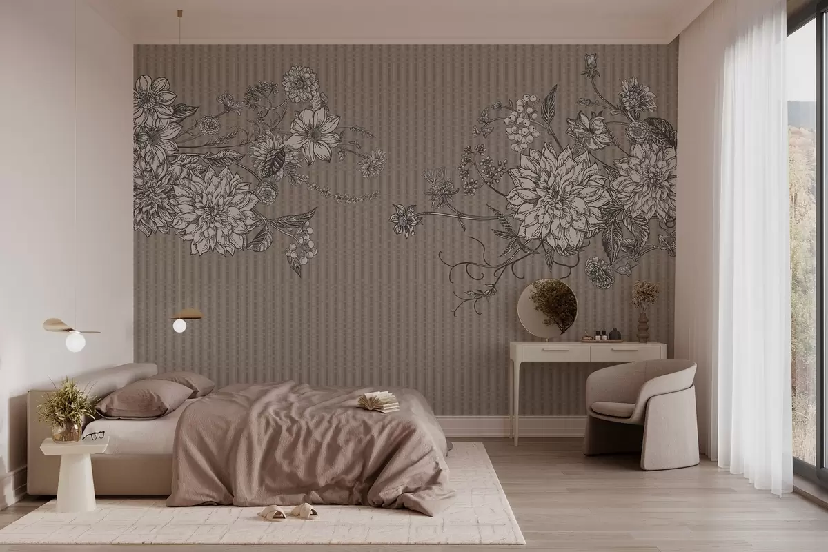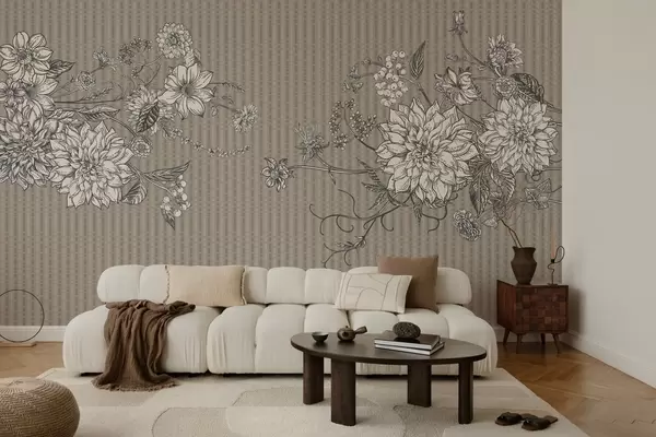 Fototapet Flori grafice pe un fundal mat în tonuri de bej Nr. w03395