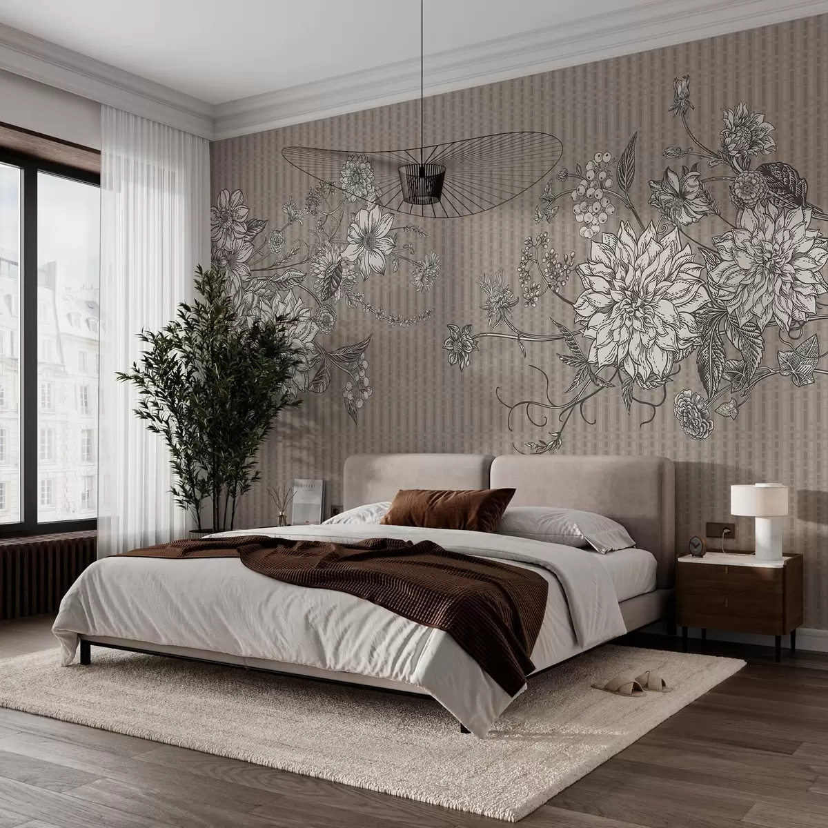 Fototapet Flori grafice pe un fundal mat în tonuri de bej Nr. w03395